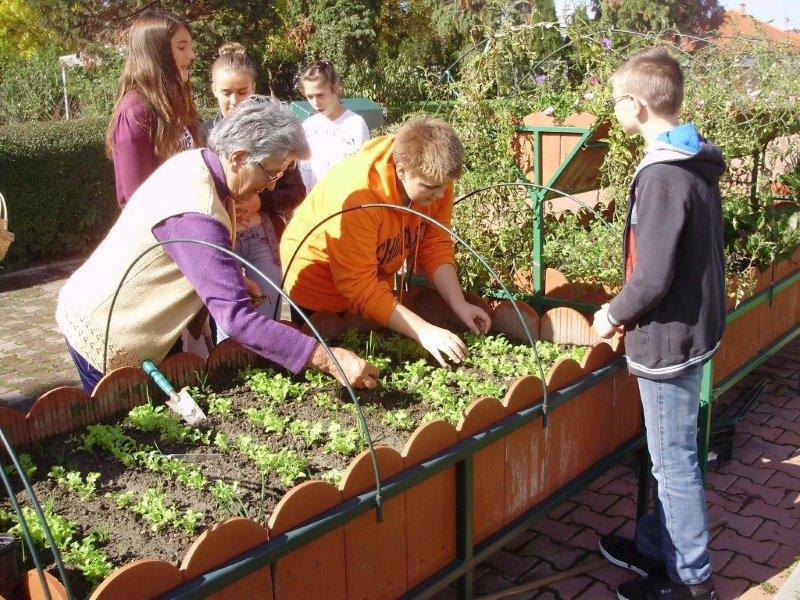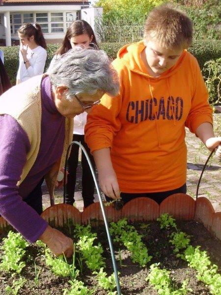 Već tradicionalni posjet Mladih biologa, učenika sedmih razreda Osnovne škole I.G.Kovačić iz Đakova, sa svojom profesoricom Mirjanom Kereta, razveselio je 11. listopada 2013. god. naše bake u Dnevnom boravku. Oni dolaze s ciljem: u eko Vrtu nade za stare i mlade, naučiti presaditi zimsku salatu. Iako su čuli da se zimska salata, nakon što se posije u gredice, mora razrijediti i presaditi to još nikada nisu učinili sami. Danas su prvi puta vlastitim rukama, u zemlju položili nježne biljke, zatim zagrnuli zemlju i nježno je pritisnuli, pazeći pritom da ne oštete nježno korijenje mlade salate. Za njih je to bila samo igra, a učenje kroz igru, ono je pravo: iskustvo i užitak koji će pamtiti. Nakon uspješno obavljena posla slijedila je nagrada – bezbrižna igra i trčanje po zelenim površinama našega vrta. Jer, za njih je igra još uvijek najdraža zanimacija, baš kao što to dolikuje svoj djeci na svijetu.