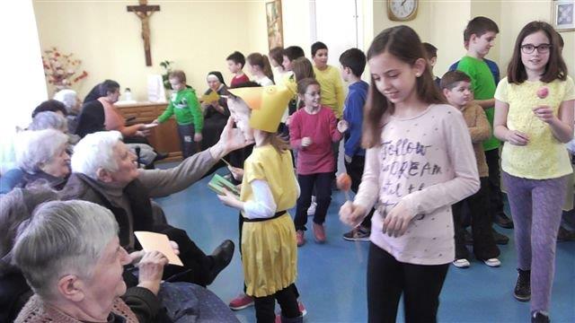 Učenici 4. b. razreda osnovne škole „Vladimir Nazor – Đakovo“ i učenici 1. razreda područne škole Pisak, posjetili su 16. 3. 2016. sa svojim učiteljicama Dnevni boravak za starije osobe u Centru Amadea. Razlog ovoga posjeta je, prema riječima njihove učiteljice, prvenstveno da razvesele korisnike i sve ostale. Djeca su s lakoćom, poput pravih budućih glumaca u prigodnim kostimima, izveli jedan dio predstave posvećene nadolazećem Uskrsu, koji su već prikazivali u Domu kulture Đakovo. Tijekom veljače, naporno su radili na velikom projektu o uskrsnim običajima u kojem su marljivo istraživali kako su naši stari nekada slavili Uskrs. To ih je i danas jako zanimalo te su poput pravih malih profesionalaca bilježili sve ono što pričaju naše bake. Bilo je uistinu zanimljivo i radost je bila uzajamna. Na kraju su prisutnima poklonili uskršnje čestitke i raznobojna šarana jaja, koje su sami izradili uz pomoć svojih učiteljica u školi. Za uzvrat su od baka dobili bombone i buran pljesak nakon njihove uspješno izvedene predstave i pjesme.