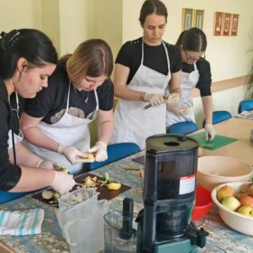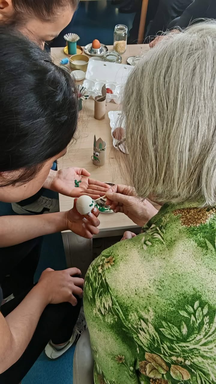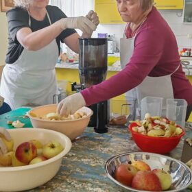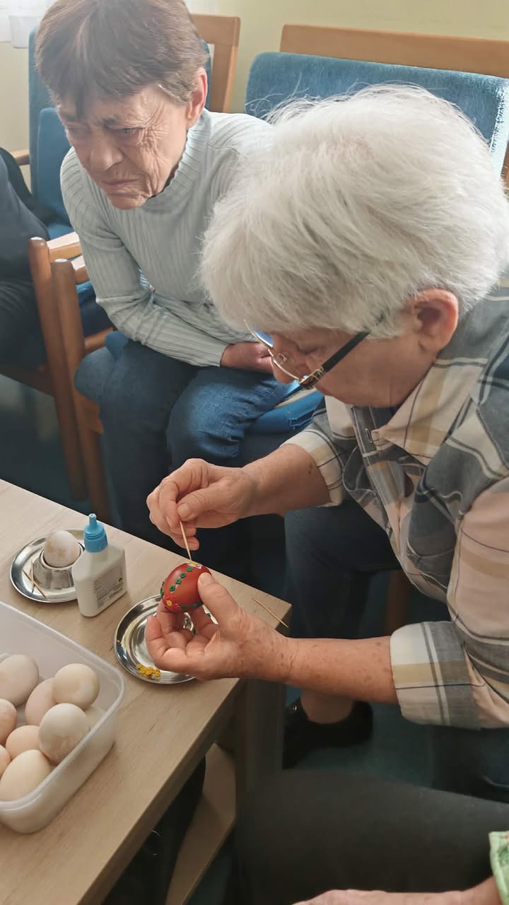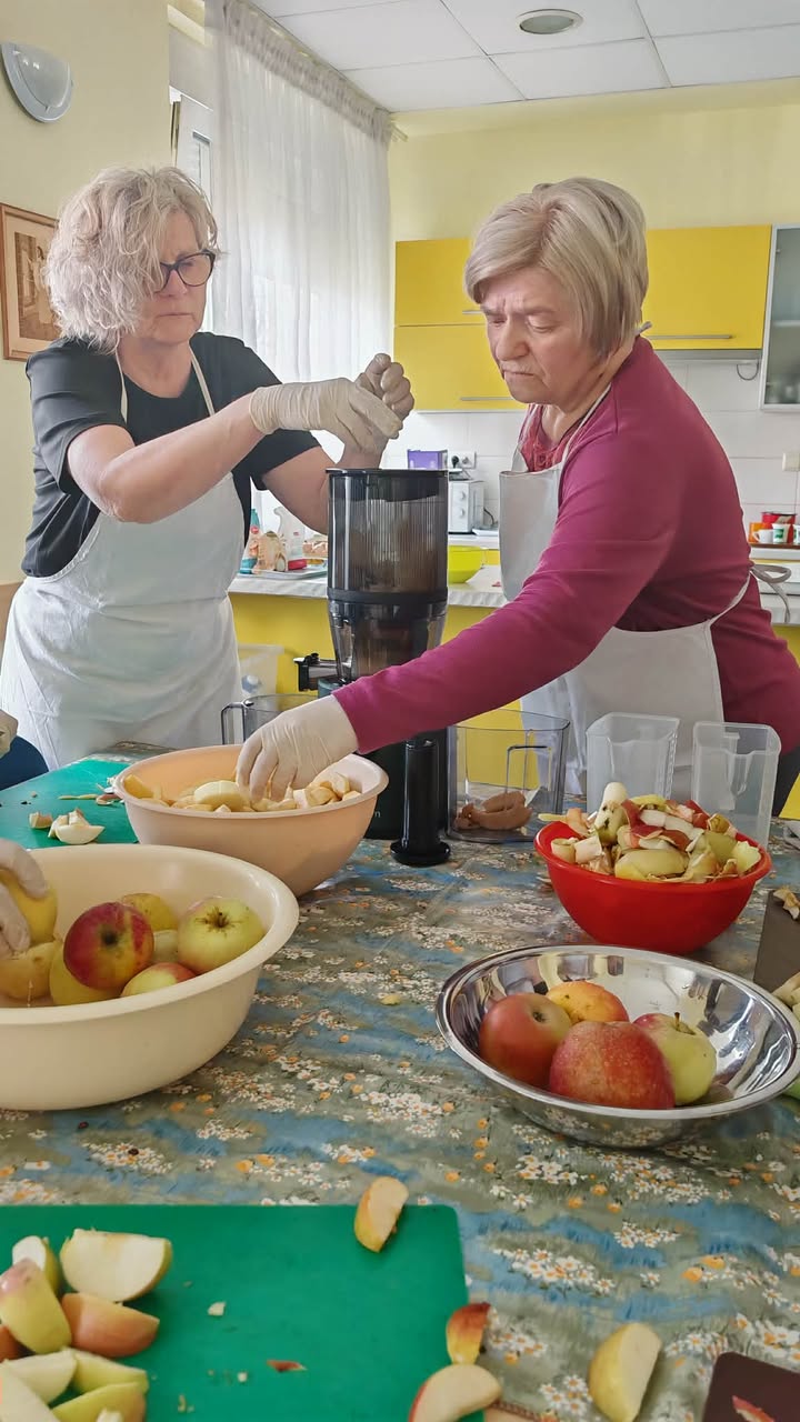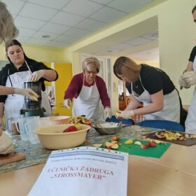 Učenici su s našim korisnicima ukrašavali pisanice, svirali gitaru i pjevali. Osim toga, predstavili su nam sokovnik i sokove kao dio zdrave prehrane. Odrađeno je i predavanje o utjecaju prirodnih sokova na zdravlje ljudi uz degustaciju. Cijeđenje soka od jabuke bez dodataka je bila prava edukacija i za korisnike i za učenike. Od ostataka jabuka, nakon cijeđenja soka, učenici su zajedno s korisnicima napravili vrlo ukusnu „švapsku pitu“. Domaće jabuke smo potpuno iskoristili jer ćemo od oguljene ljuske napraviti bioenzim – sredstvo za čišćenje radnih površina, rekli su učenici.  Svrha aktivnosti je povezati učenike s osobama u potrebi glede empatije, humanitarnog djelovanja te razmjene iskustva i ugodnog druženja, a program je proveden u sklopu projekta “Od ploda do soka – puna čaša zdravlja” koji provodi UZ Strossmayer iz Srednje strukovne škole Antuna Horvata Đakovo. Projekt je usmjeren je edukaciju učenika o tradicionalnoj i modernoj proizvodnji soka od voća i povrća, poticanje poduzetničkih ideja koristeći školske i lokalne vrste namirnica te pravljenje različitih vrsta domaćih multivitaminskih sokova.