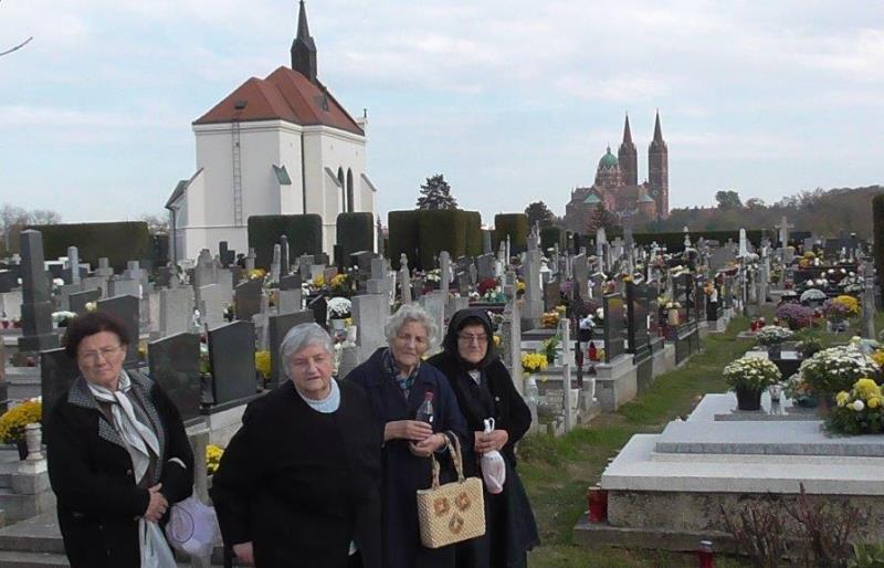 Na sam Dušni Dan, 2.11.2016., naše bake, korisnice Dnevnog boravka za starije osobe, posjetile su Đakovačko groblje, prisjećajući se svih vjernih mrtvih, osobito onih koji su nam bili bliski za života. Upalile su svijeće, stavile cvijeće na njihove grobove i pomolile za sve duše dragih pokojnika unaprijed se radujući zbog susreta s braćom i sestrama u Kristu jednog dana na nebu. I dok su tako obilazile grobove svojih najmilijih, spontano su mislile o životu i smrti, koja je blizu. Mi to znamo i osjećamo, rekle su one i nastavile: Smrt – to su vrata u Život, u Život vječni, razmišljale su one na glas. Naša prava domovina je na nebu. Ovdje, na zemlji, sve je prolazno. Više nemamo što očekivati u ovoj Dolini suza, ostaje nam samo patnja, svojom vjerom i molitvom spremamo se na vječnost. Naš čas je blizu, stoga molimo za sretnu smrt.