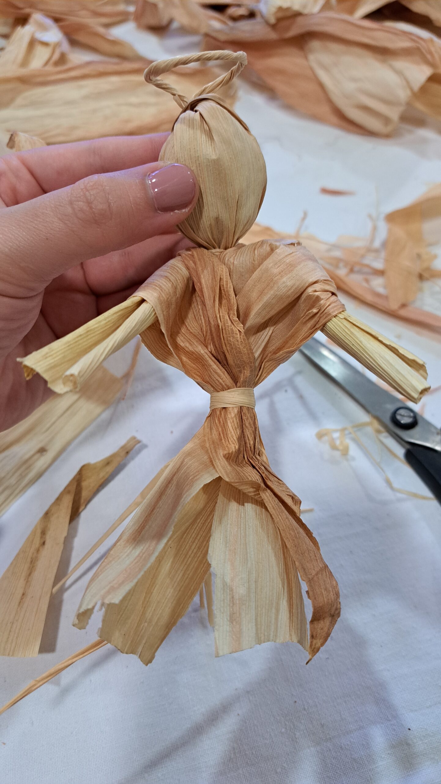 Za izradu rukotvorina šušku je najprije potrebno probirati tako da se uzimaju čisti dijelovi i odrežu od stapke, te lagano pošpricaju vodom kako bi bili mekši. Potom se, ovisno o tome što ćete izrađivati, odaberu prikladni dijelovi i izrada može početi. Mi smo se odlučili na izradu anđela budući da se približavaju božićni blagdani.